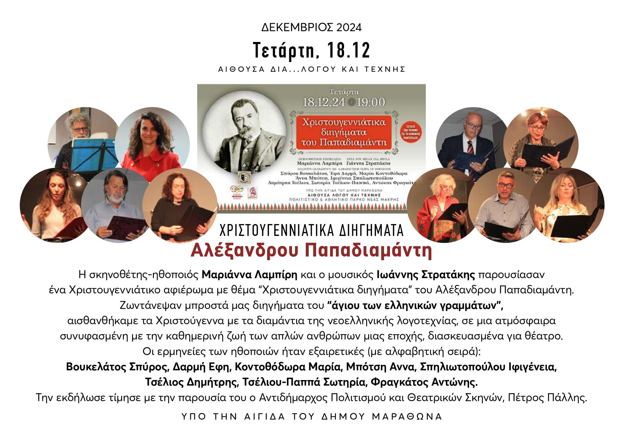 - Θεατρικές και μουσικές βραδιές: Αφιερώματα σε κλασικούς συγγραφείς (Παπαδιαμάντης), θεατρικές παραστάσεις και χριστουγεννιάτικες γιορτές με παραδοσιακά κάλαντα και παραμύθια.