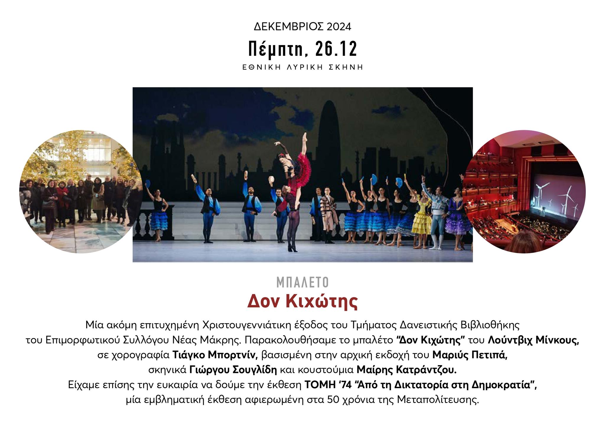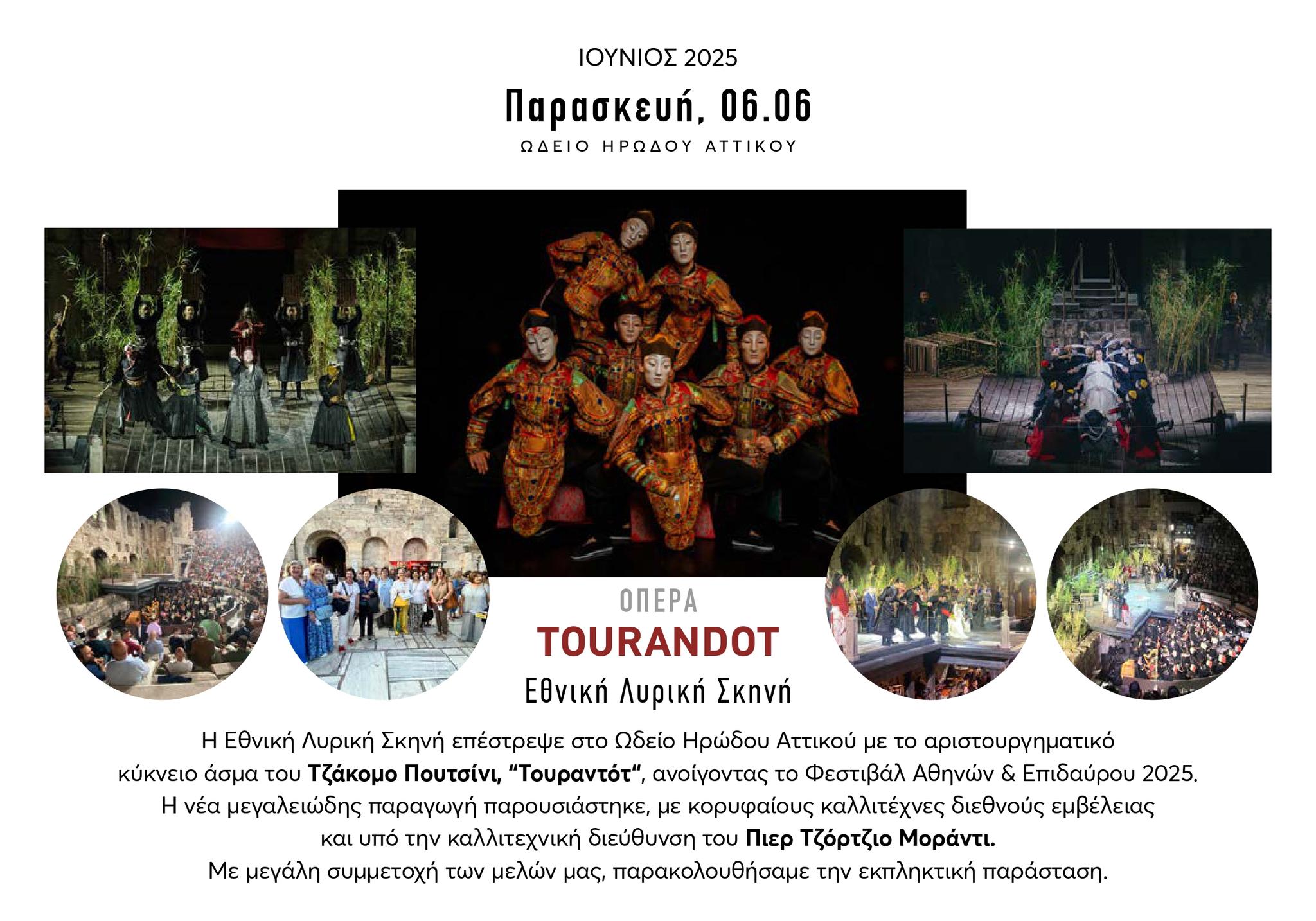 - Επισκέψεις σε πολιτιστικούς χώρους (Εθνική Λυρική Σκηνή, Ωδείο Ηρώδου Αττικού, Κέντρο Πολιτισμού Ελληνικός Κόσμος), δίνοντας στα μέλη τη δυνατότητα να ζήσουν μοναδικές εμπειρίες τέχνης και ιστορίας.