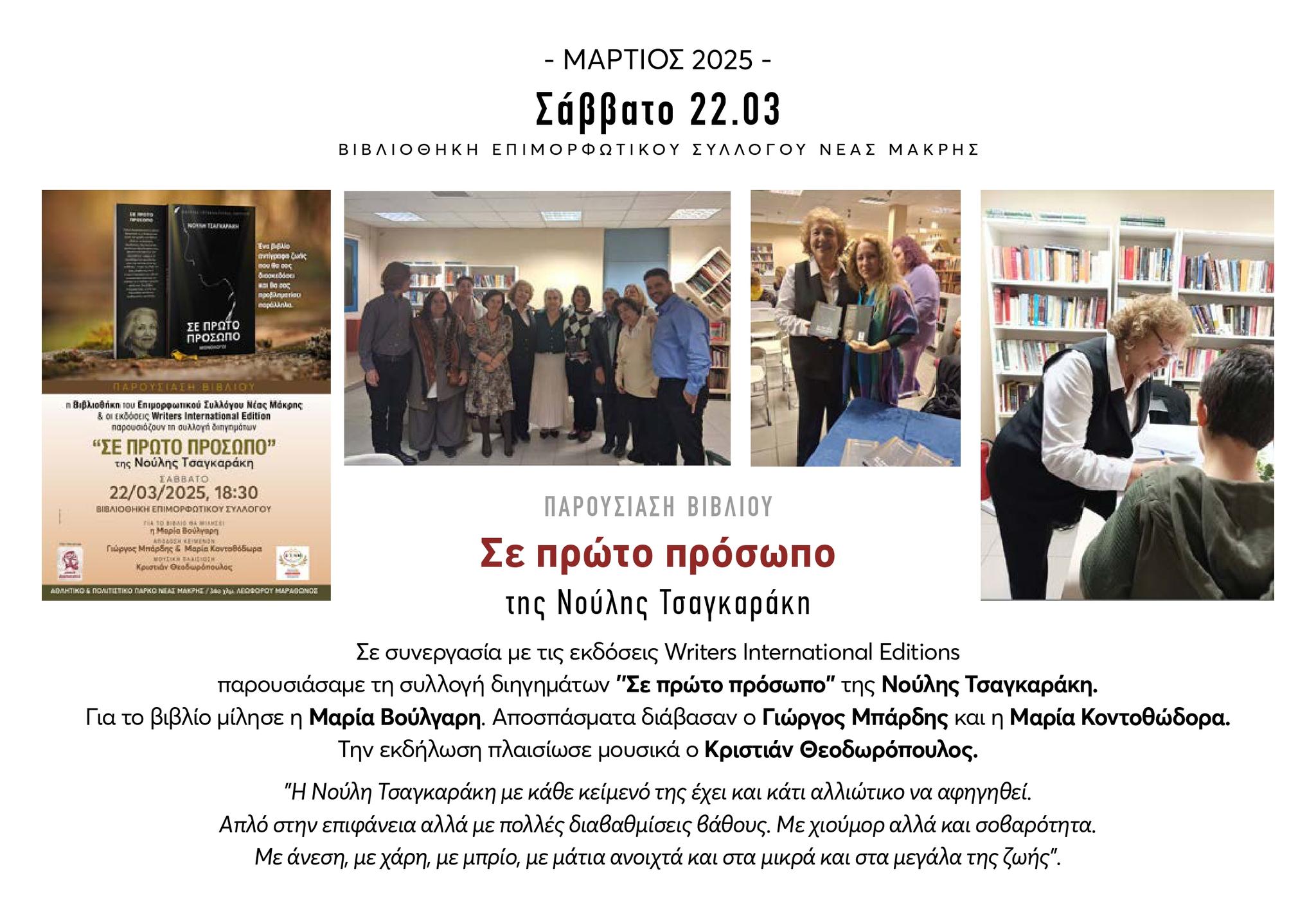 - Παρουσιάσεις βιβλίων με καταξιωμένους συγγραφείς, όπως η Λένα Μαντά και η Νούλη Τσαγκαράκη, αλλά και νέες φωνές της λογοτεχνίας.