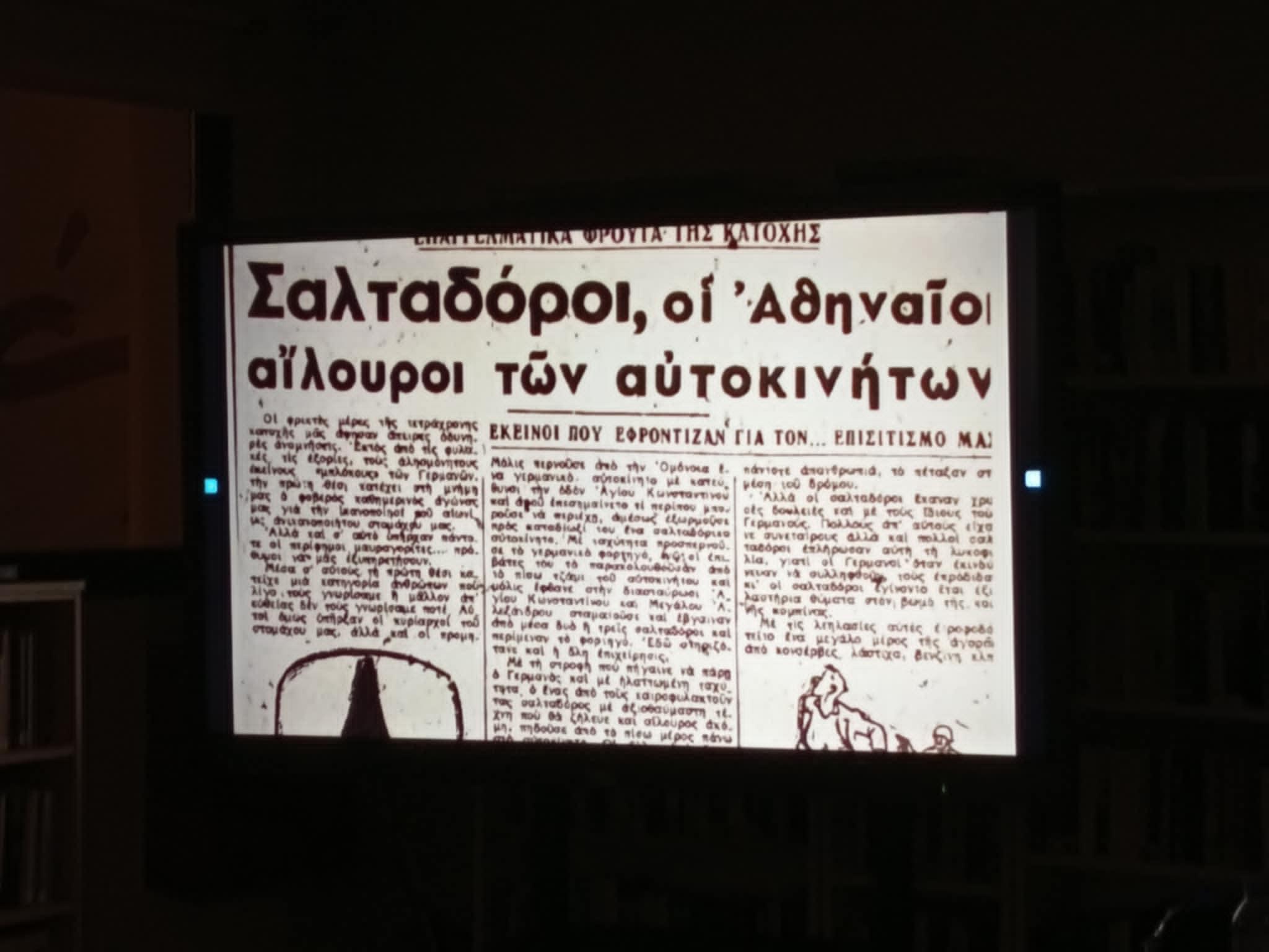 Παίζοντας καθημερινά τη ζωή τους κορώνα-γράμματα ρίχνονταν στον αγώνα επιβίωσης με μόνα τους όπλα, το θάρρος, τη φαντασία και την εξυπνάδα τους. Τρεις ομιλητές θυμούνται και αφηγούνται όσα άκουσαν από τους παππούδες τους- σαλταδόρους τη σκληρή περίοδο της Κατοχής.